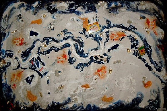 Technik: Assemblage auf Holzplatte